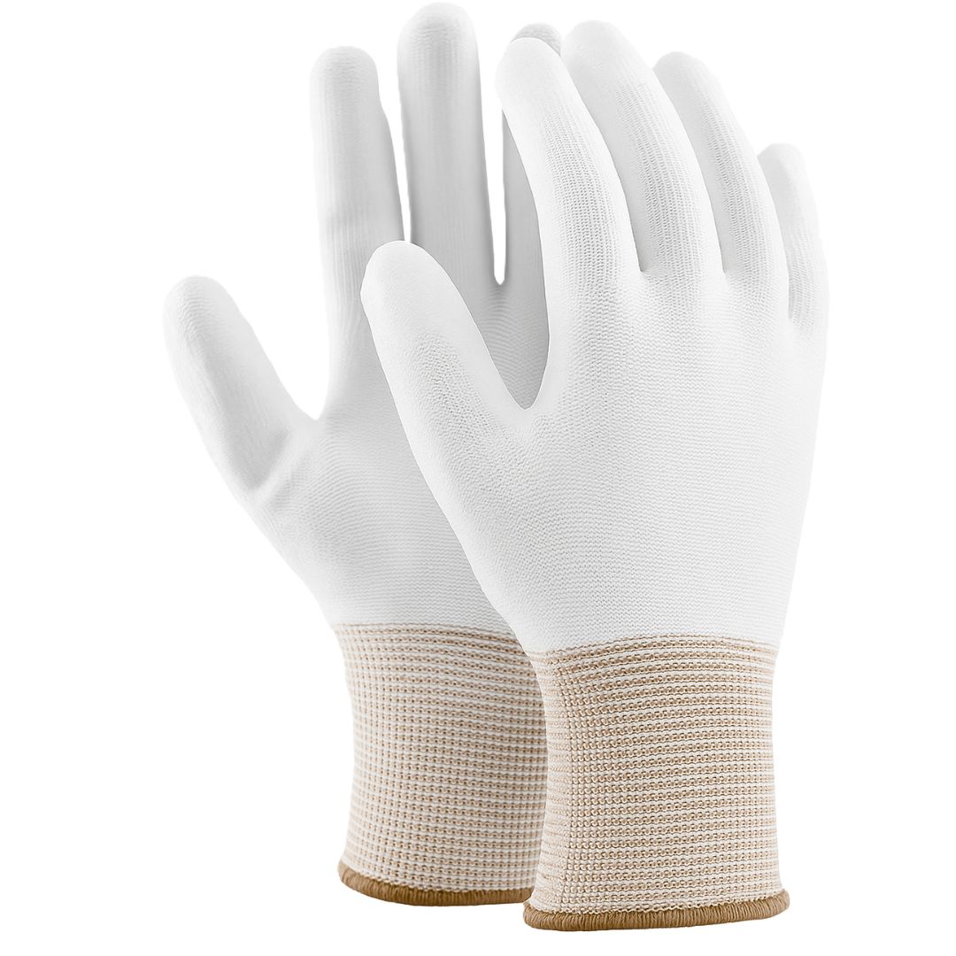 - Powleczenie: wewnętrzna część dłoni pokryta poliuretanem (PU) – zapewnia doskonały chwyt i odporność na zużycie