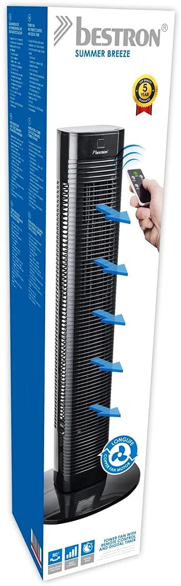 Wentylator wiatrak kolumnowy Bestron wieża pilot timer 3 prędkości 50W 80cm