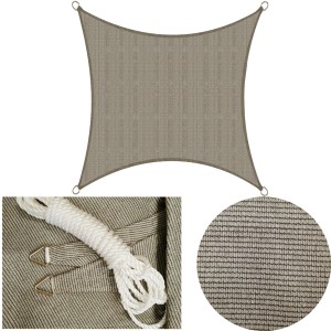 Żagle wykonane z siatki/dzianiny na bazie tasiemek HDPE o bardzo dużej wytrzymałości i odporności na niszczące działanie promieni UV – odporność wyrażona w jednostkach KLy (kilolengley), badana laboratoryjnie wynosi minimum 500, co przekłada się na wysoką odporność i wytrzymałość w warunkach nasłonecznienia w Europie środkowej.