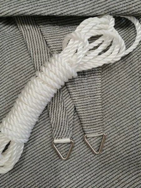 - W zestawie: żagiel tarasowy, sznurki w kolorze białym.