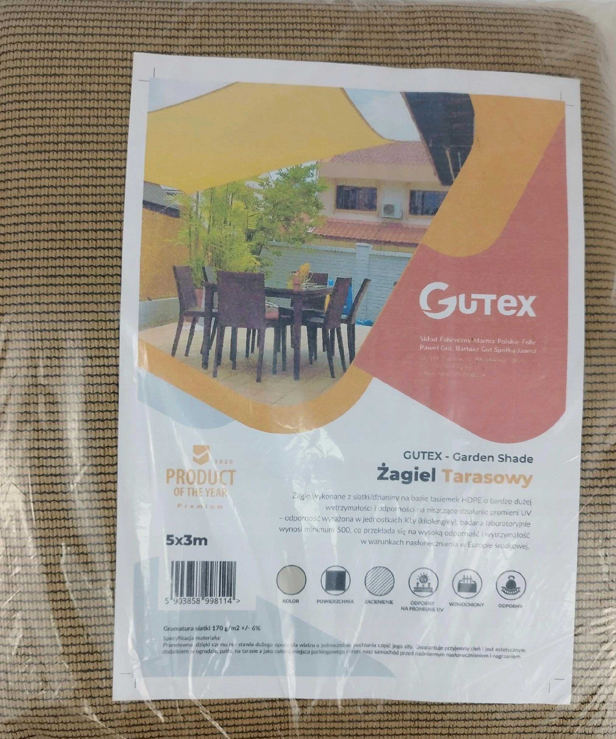 Żagiel Tarasowy Gutex HDPE 5mx3m siatka zacieniająca taras beżowa